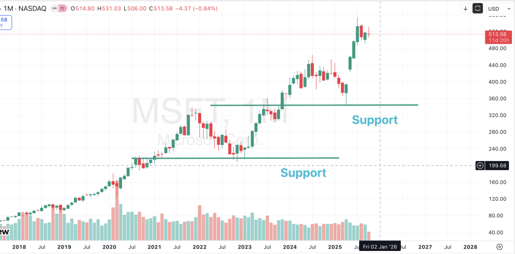 Suppose Nifty has touched 22,000 several times and bounced — that’s your support zone.