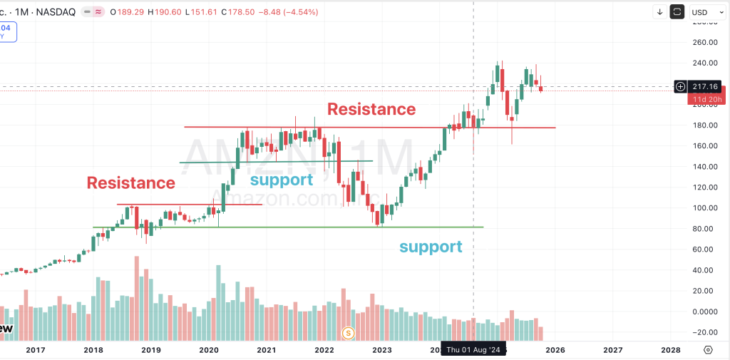 If a stock struggles to move above ₹300 multiple times, ₹300 is the resistance level.